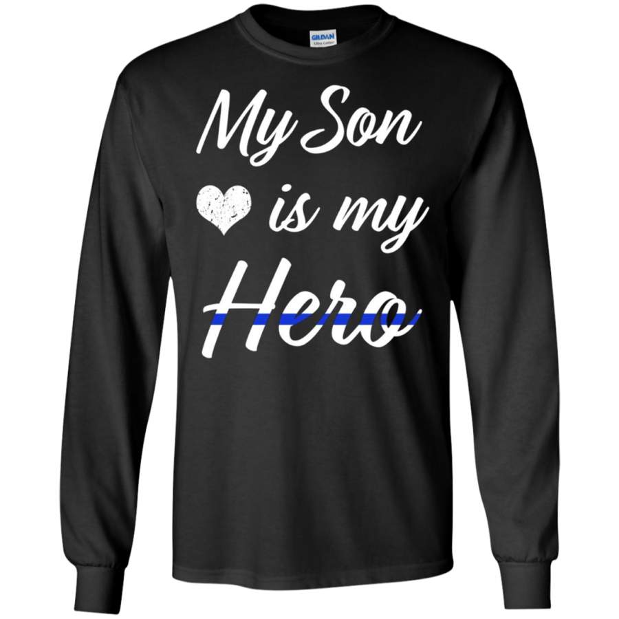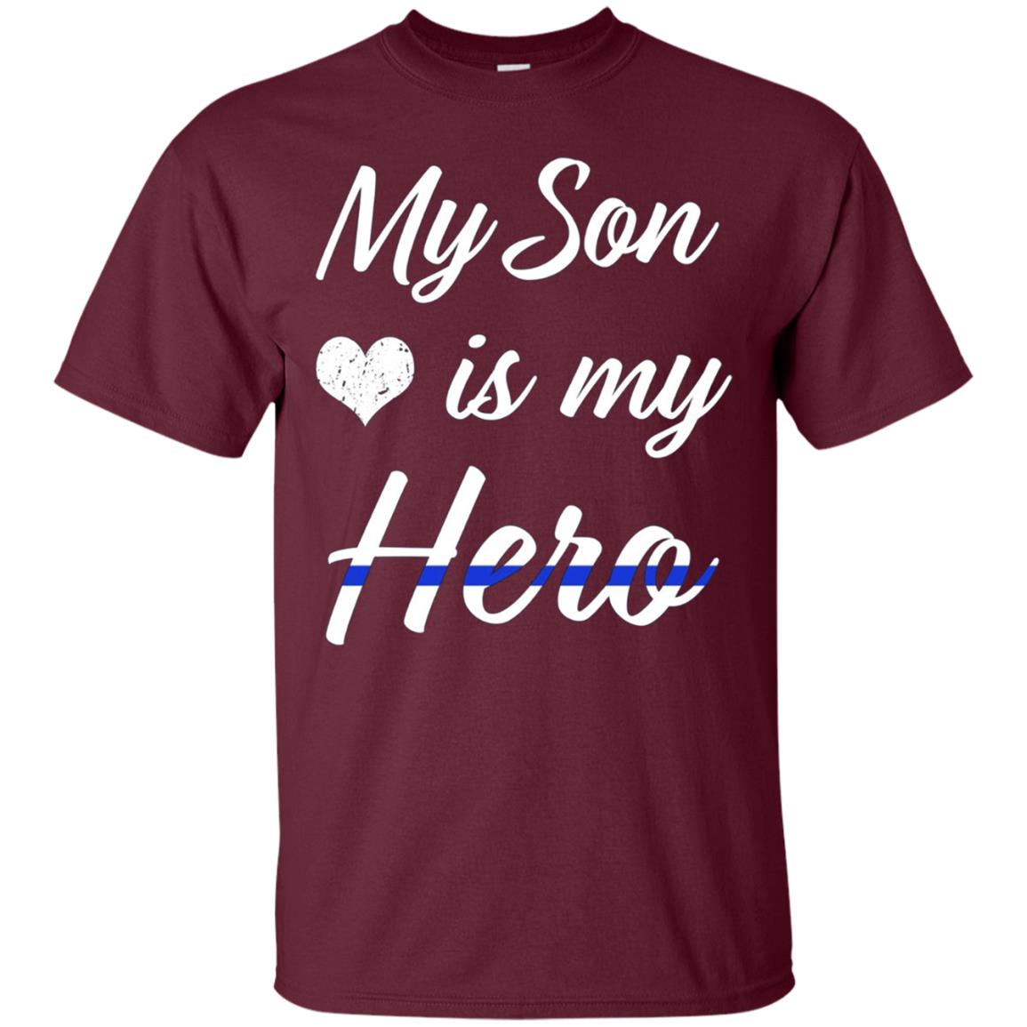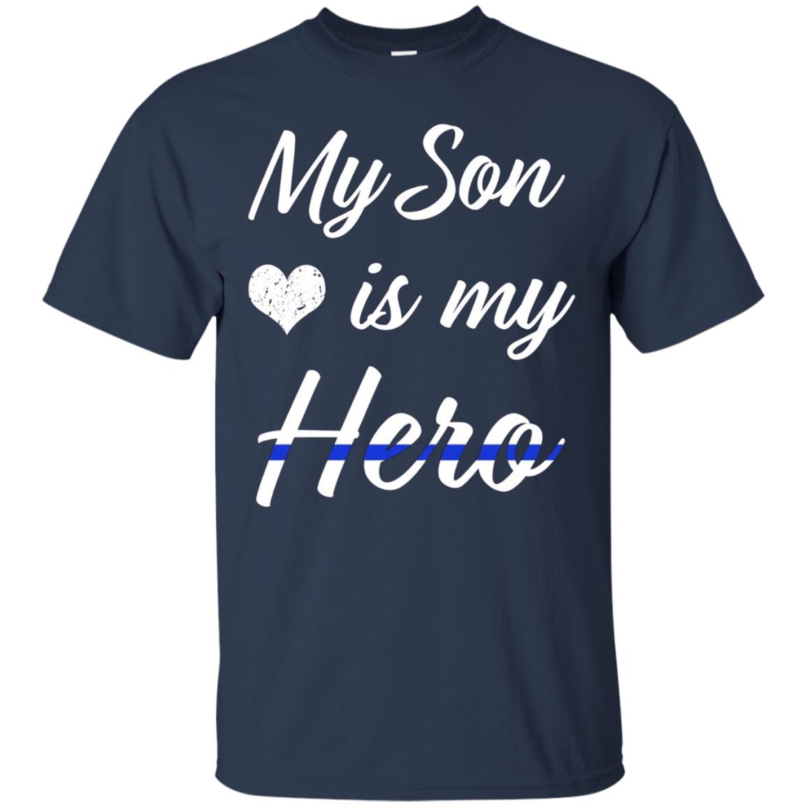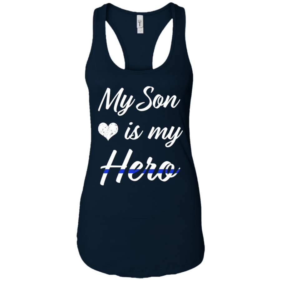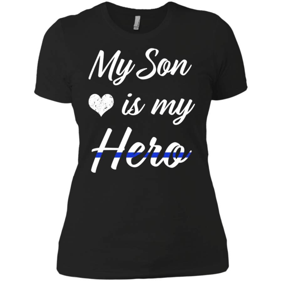 Womens My son is my Hero Thin Blue Line Police Officer Mom Shirt