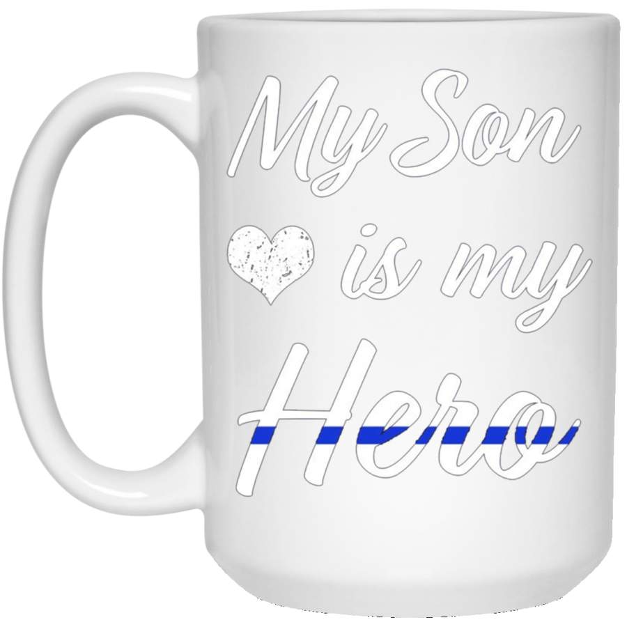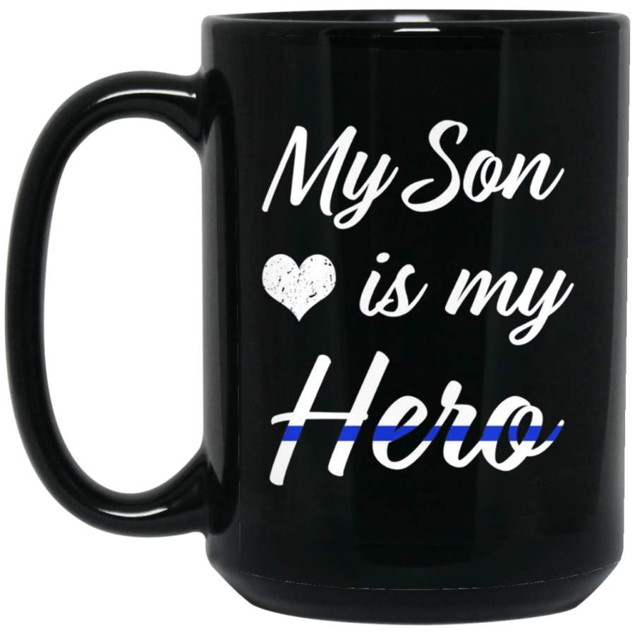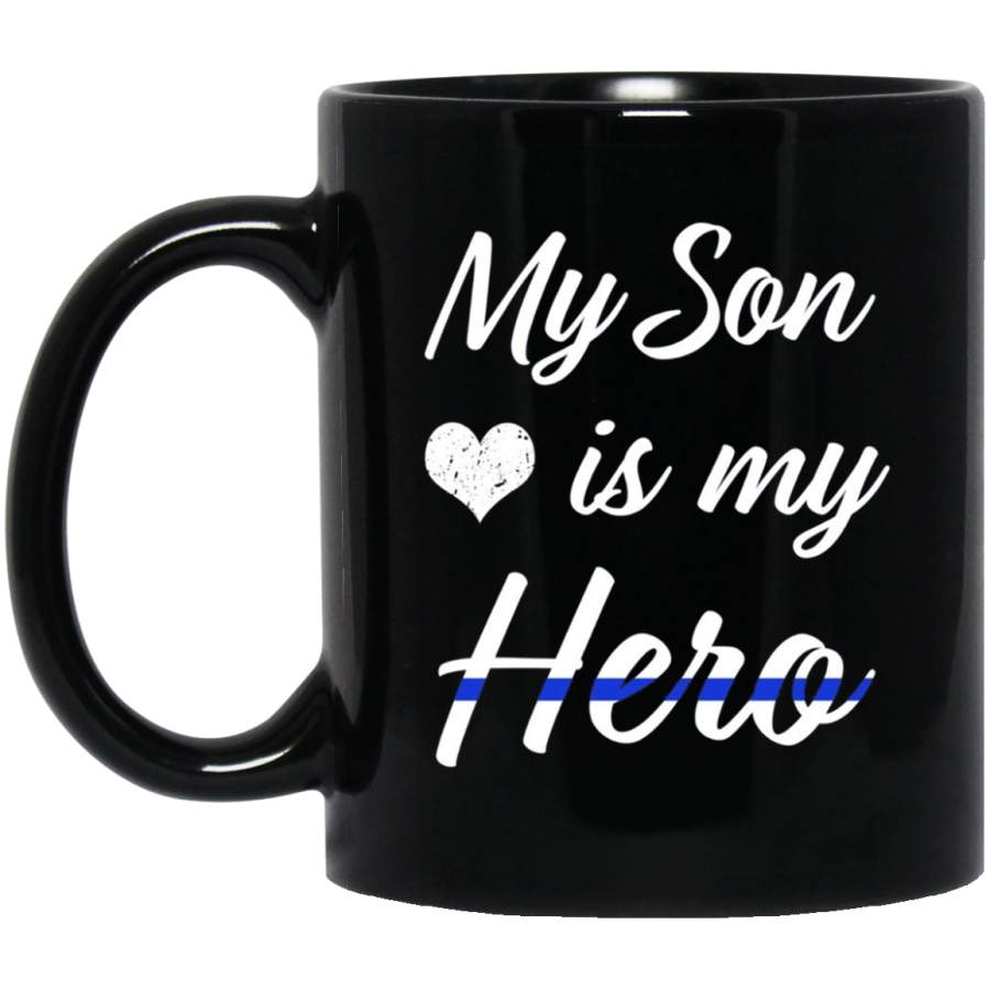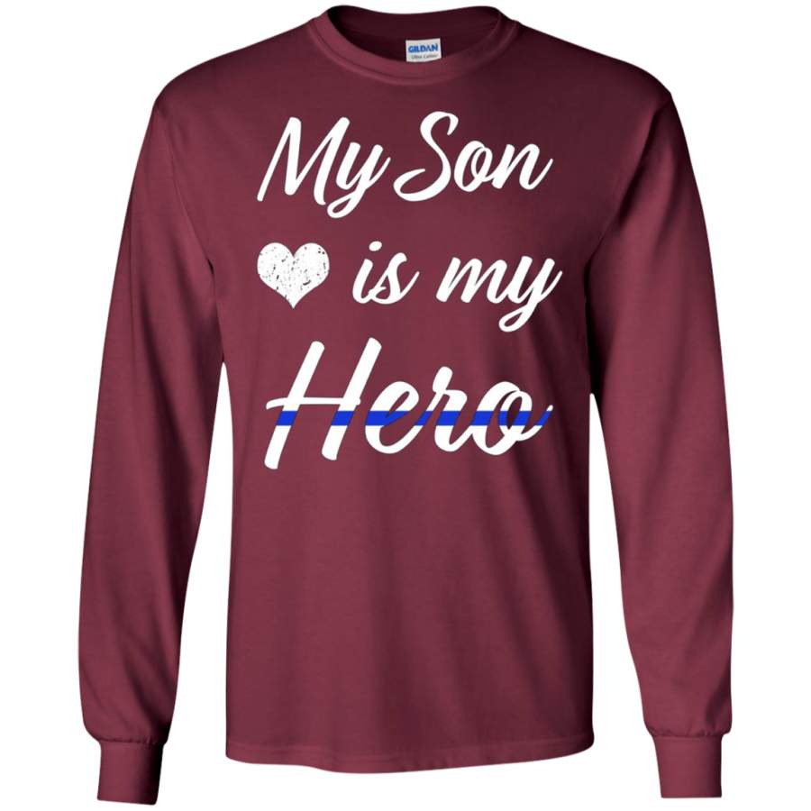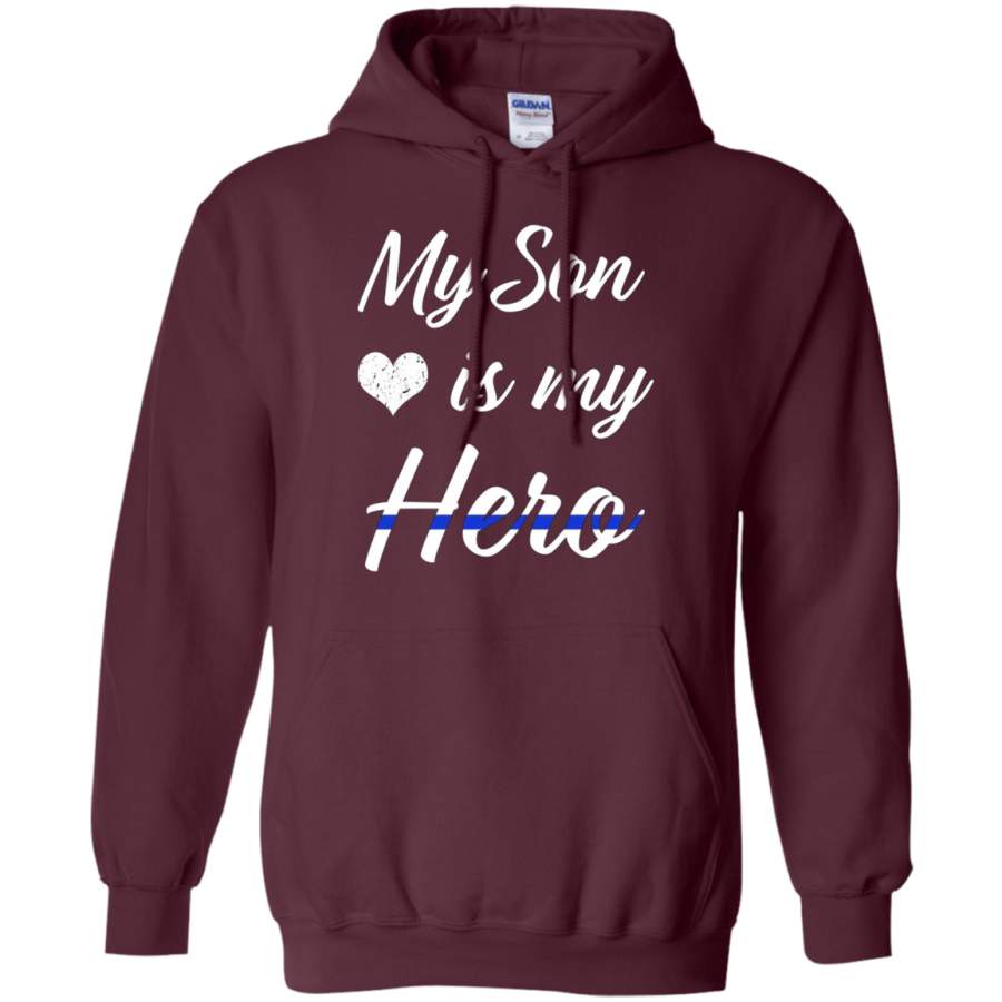 Womens My son is my Hero Thin Blue Line Police Officer Mom Shirt